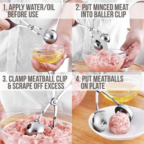 - Convenient and easy to Use. With clip head opening design. Put chopped meat on the scoop, then clip it, the excess meat will squeeze out from the hole. Remove the excess meat and easily complete the meatball production.